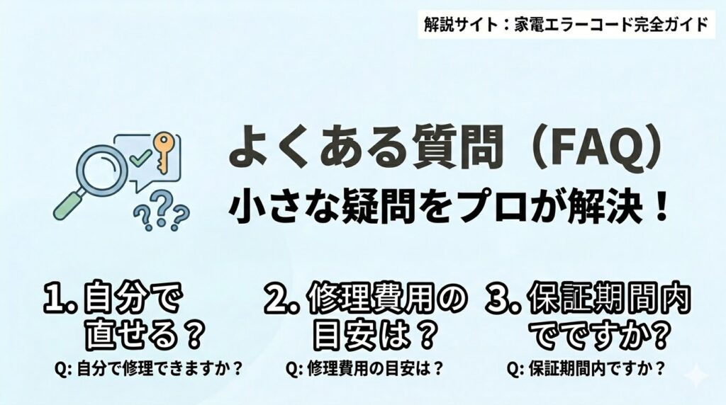 A: エラーコードの内容によっては、ご自身で対処できる場合があります。この記事で紹介した対処法を試してみてください。ただし、専門的な知識や技術が必要な修理は、必ず専門業者に依頼してください。無理に分解・修理しようとすると、洗濯機本体を破損したり、感電などの事故につながる恐れがあります。